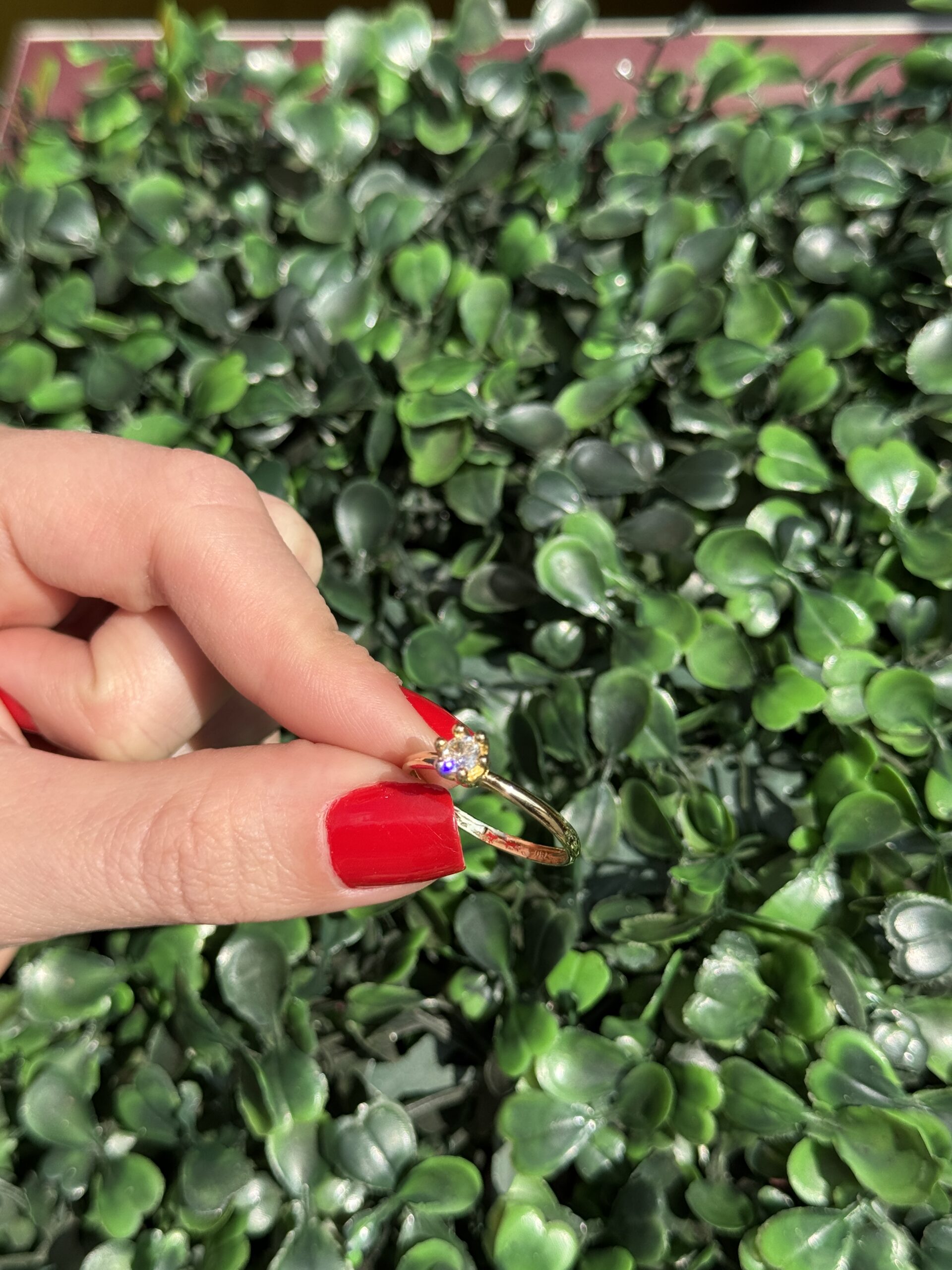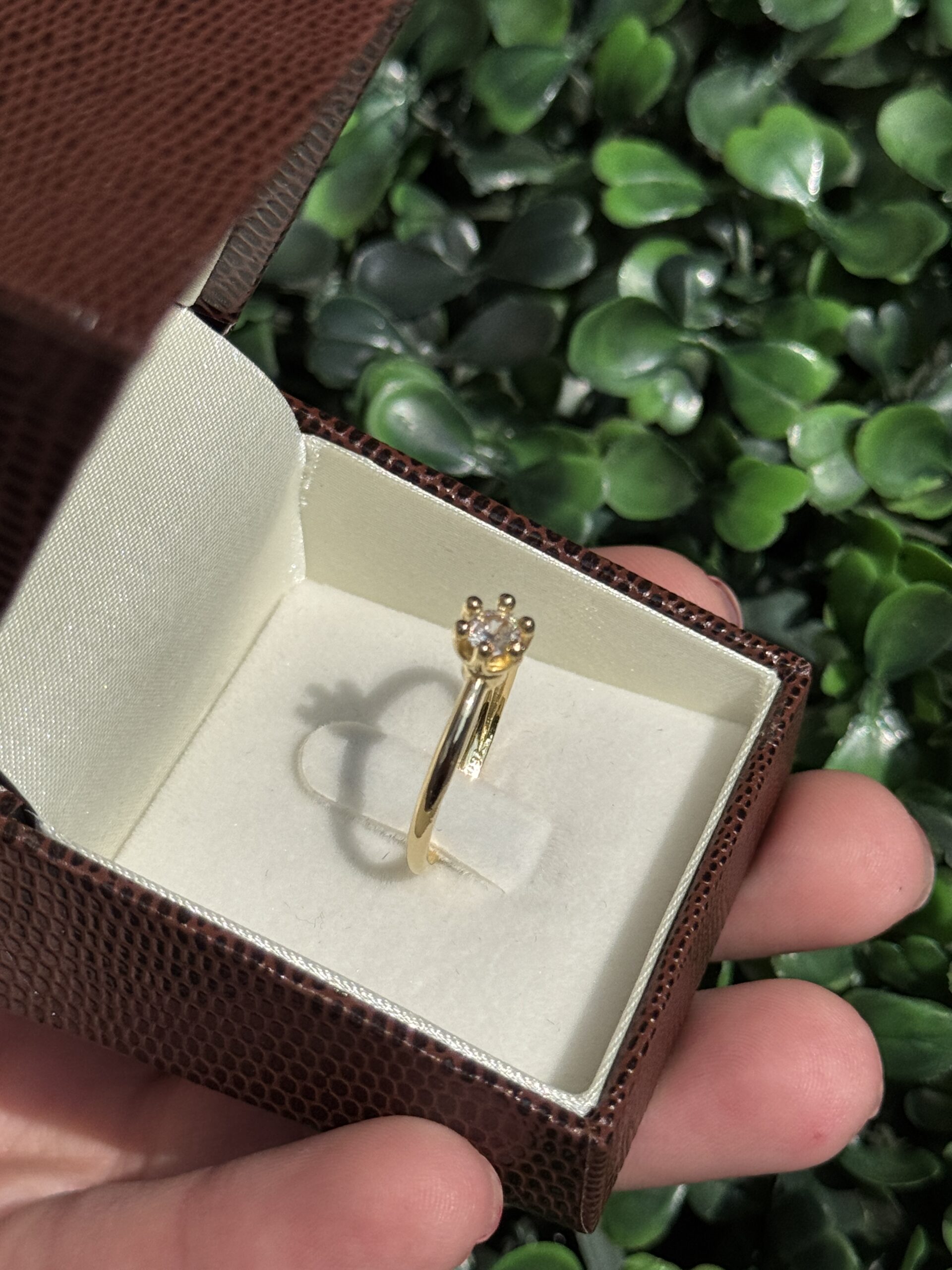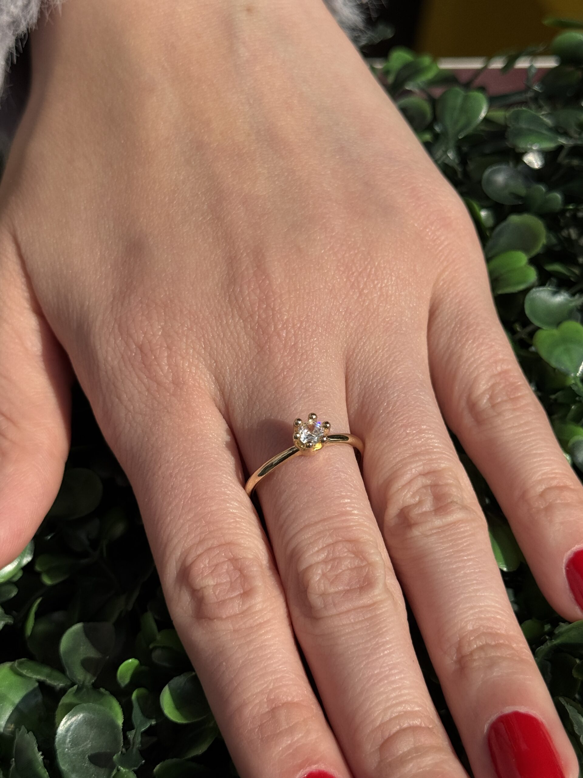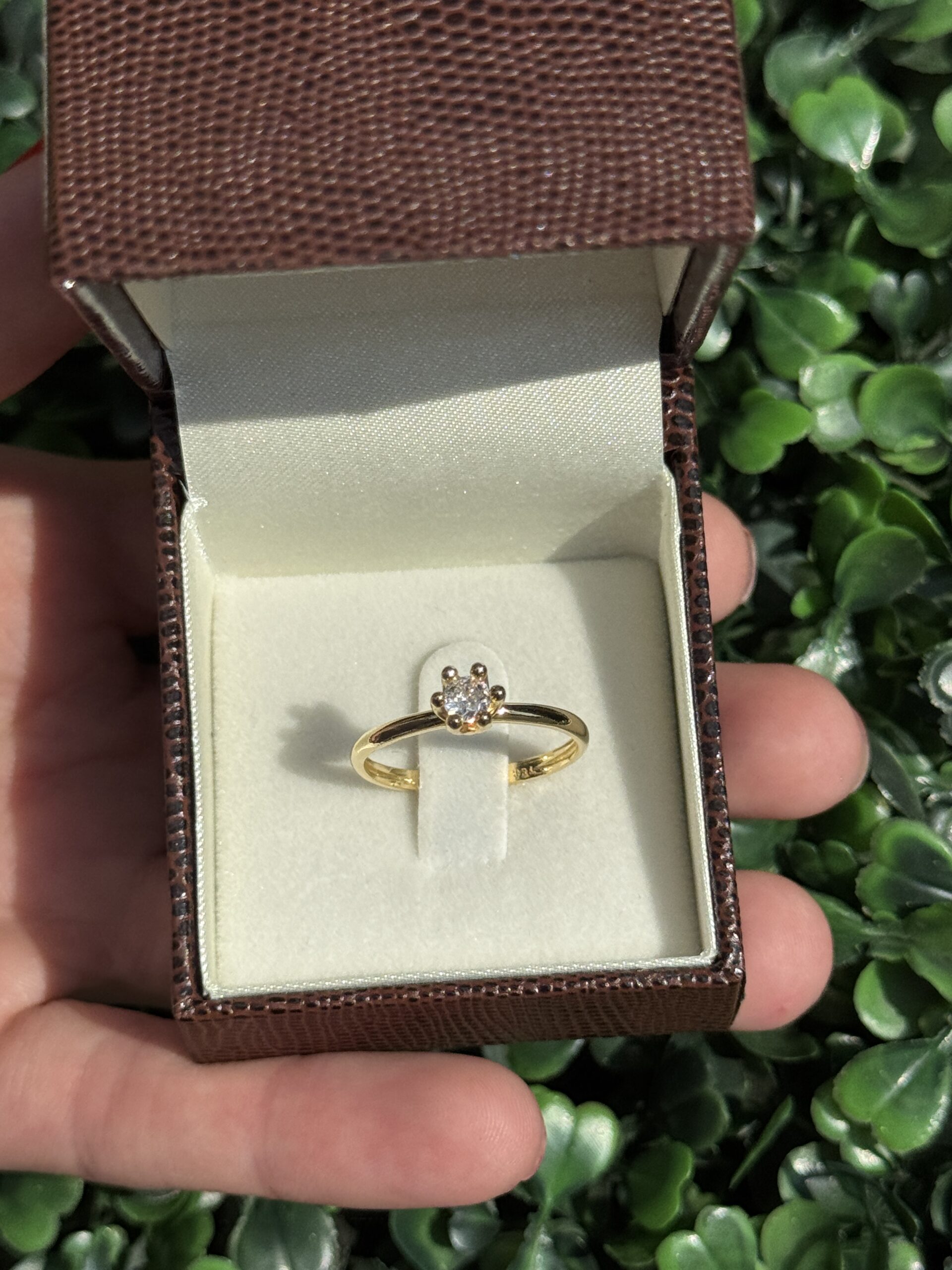 Um solitário em ouro 18k, simples e elegante, com uma pedra que brilha com delicadeza e muito charme.